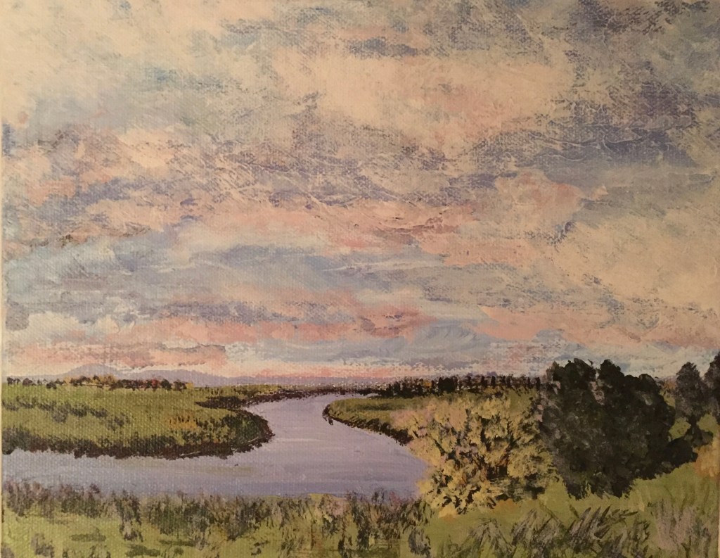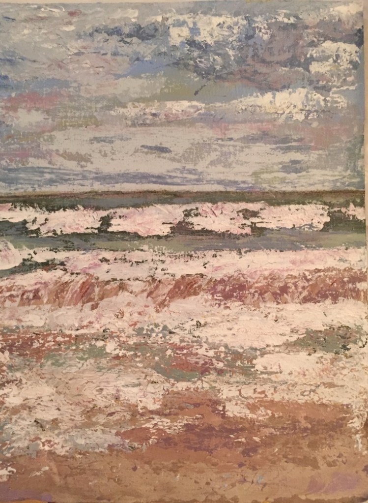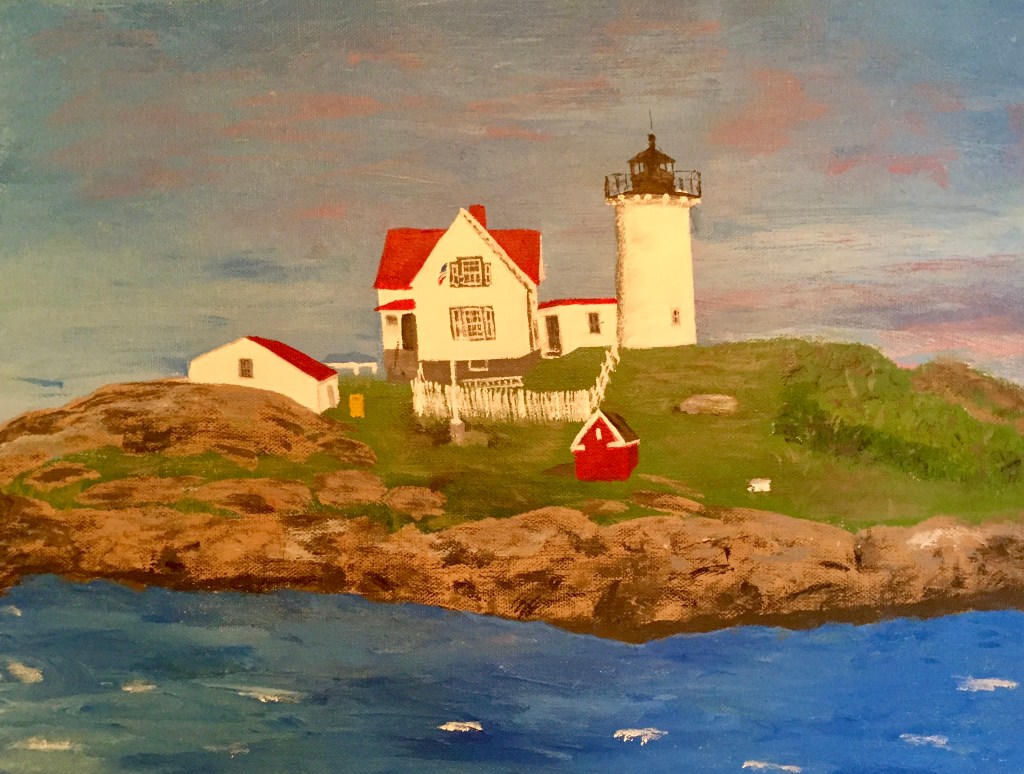 I began to paint with acrylics on canvas in my first group art lessons at Newburyport Art Association in 2016. Several months later, I followed up with a six week drawing class. I w an enthusiastic beginner and believe that it’s never too late to learn something new and discover a new part of yourself. I hope you enjoy these photos of my paintings and drawings. Several were used as illustrations in local anthologies that include my poetry. My journey into drawing and painting has inspired my poetry and creative writing and vice versa.